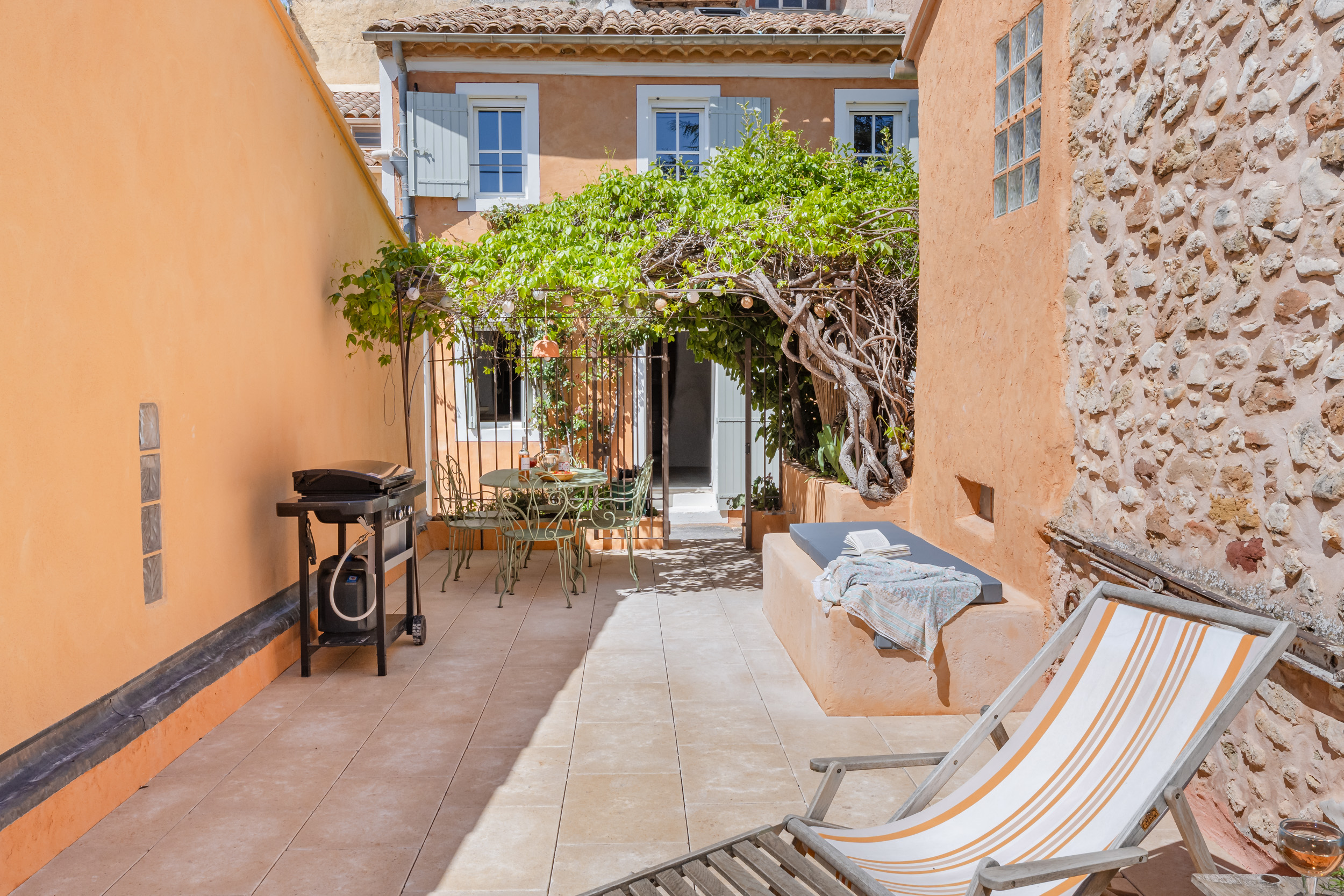 Geniet van een intieme buitenruimte met een eethoek, ligstoel om te ontspannen en een barbecue voor gezellige avonden.