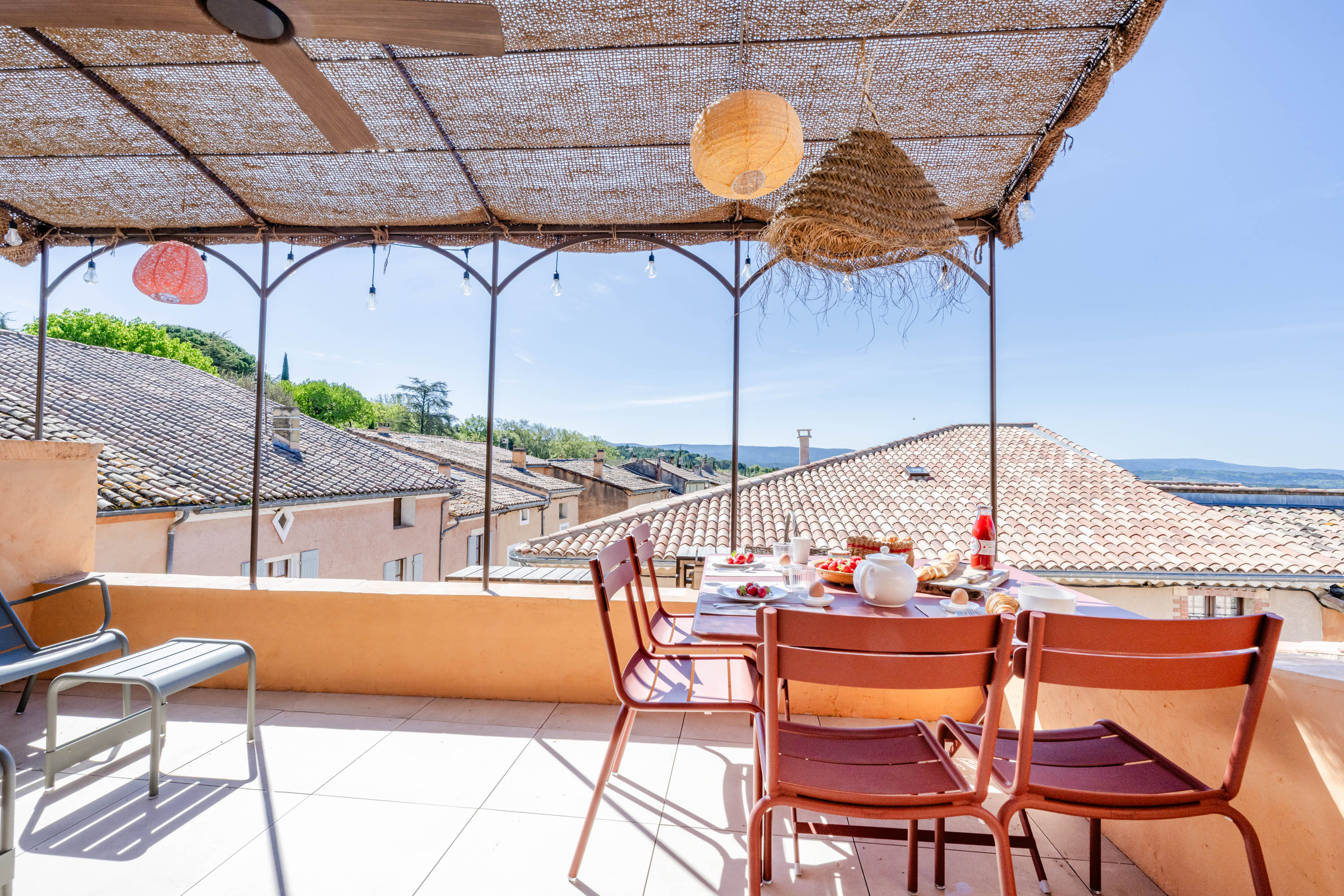 Le petit avantage de Chez Prunelle, c'est sa terrasse de 15m2 sur le toit. Profitez d'un apéritif en famille ou entre amis en admirant le coucher du soleil ou la vue sur la jolie petite place avec sa fontaine…